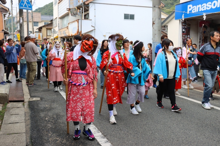 井原町まちづくりの会(落合政満会長・つどえ~る登録団体)主催による鬼まつり交通安全啓発パレードが10月26日、井原町で実施されました。