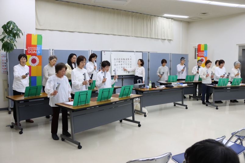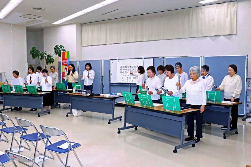 トーンチャイムの演奏や歌を楽しむことで生活に潤いを与え、脳の活性化を図ろうと活動している音楽療法で若返り教室(つどえ~る登録団体)が11月9日、つどえ~るで無料公開講座を開きました。