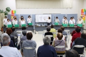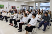 冒頭、同教室を主宰している音楽療法士・歌唱療法士の野宮弘恵代表が、会場を訪れた約50人を前に「開講5年目になりました。きょうのイベントは教室関係者14人の発表の場であり、音楽療法が人々に活力を与えることを知っていただくための公開講座。童謡や懐かしい歌謡曲を一緒に楽しんでください」と挨拶。