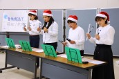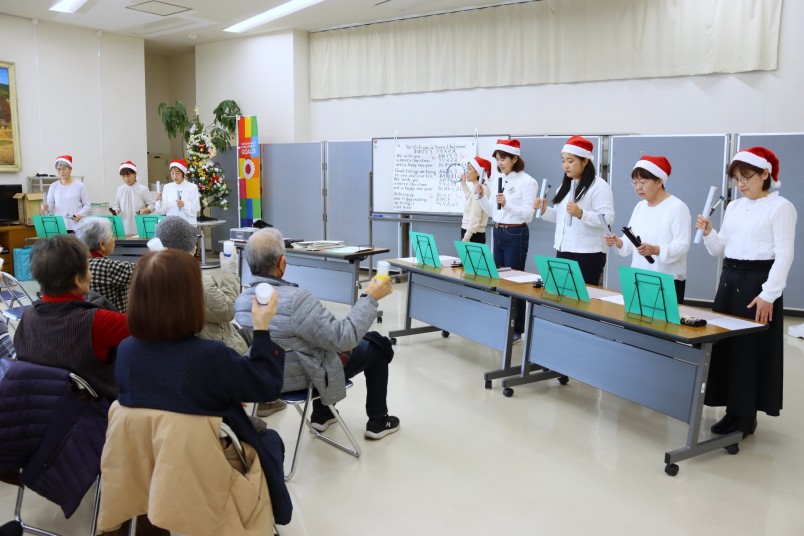 演奏は「聖者の行進」を皮切りに「ひいらぎかざろう」「冬景色」など9曲。会場を訪れた50人は約1時間、トーンチャイムの美しい音色を聴きながらクリスマス曲を歌い楽器を鳴らし、楽しいひとときを過ごしました。