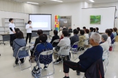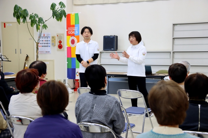 この日は「災害に備えて」をテーマとした内容で、講師は同施設長の田中美鈴氏と生活相談員及び事務局長の西山祐樹氏。