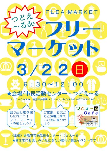 春のつどえ~るフリーマーケットは約20店を募集して3月22日(日)午前9時30分にオープンします。